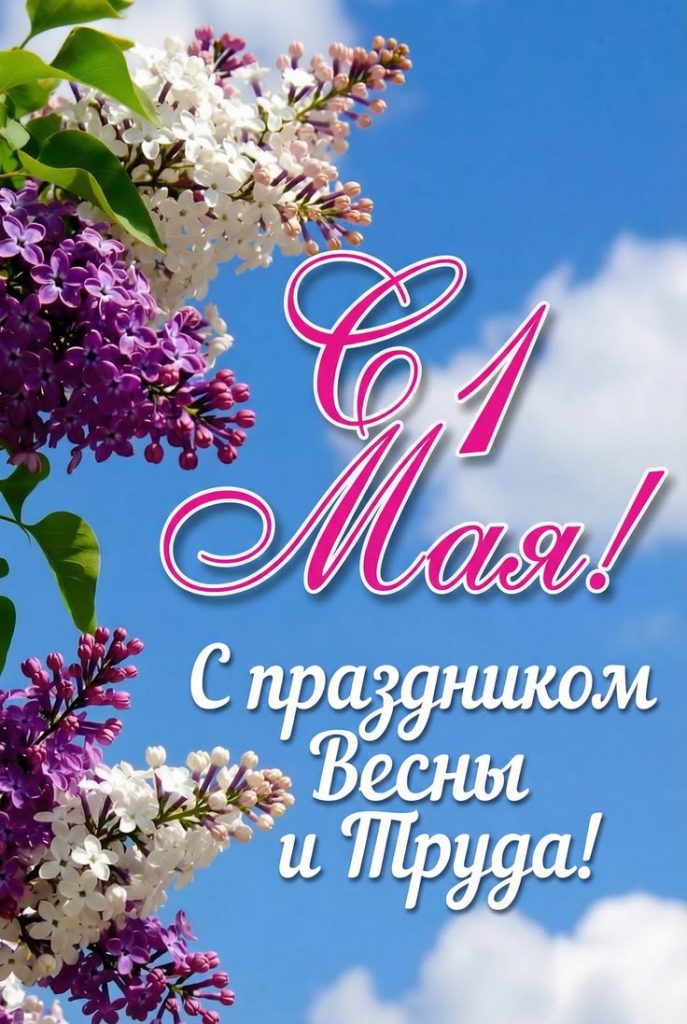 - Поздравляю с 1 Мая! Пусть в жизни будет меньше тревоги и больше ясности. Пусть трудовые будни проходят спокойно, а результаты вашей работы замечают и ценят.