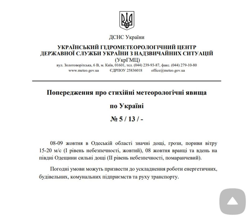 По данным Гидрометцентра Чёрного и Азовского морей, на юге Одесской области ожидается непогода второго, «оранжевого» уровня опасности. Синоптики предупреждают о сильных дождях и порывах ветра до 15–20 м/с.