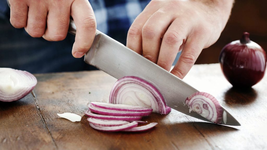 Даже простой острый нож снижает количество слёз, потому что он меньше разрушает клетки лука. Тупое лезвие буквально выдавливает сок, усиливая выделение раздражающих веществ.