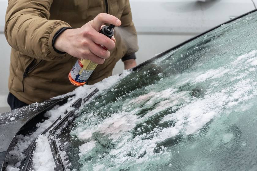 - Если лед плотный, распылите антиобледенительный спрей на стекло.