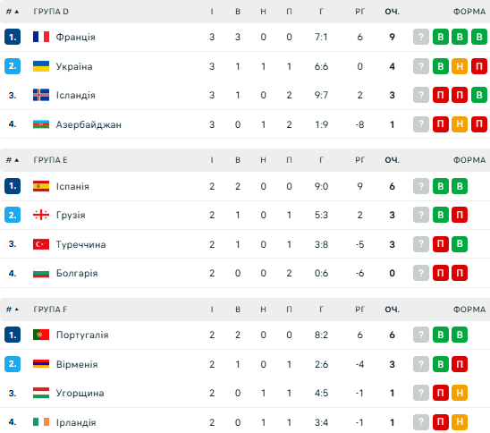 Команда Сергея Реброва выступает в группе D вместе с Францией, Исландией и Азербайджаном. Украина начала квалификацию с поражения от французов, после чего сыграла вничью с Азербайджаном. В октябре сборная одержала важную победу над Исландией, сократив отставание от лидера группы. Следующий матч “сине-жёлтые” проведут против Азербайджана — игра может стать ключевой в борьбе за выход в плей-офф.