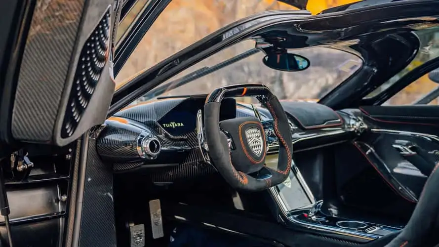 Салон Tuatara Striker оснащен цифровой панелью приборов и центральным сенсорным дисплеем для управления функциями автомобиля. Стандартное оборудование включает кондиционер, электростеклоподъемники, камеры заднего и бокового обзора, а также аудиосистему.